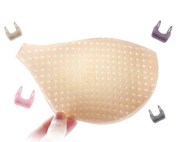 ,съемные чашечки из тонкого дышащего перфорированного (с отверстиями, пропускающими воздух) поролона имеют форму бюстгальтера, поэтому они фиксированы, не смещаются, не выделяются под одеждой