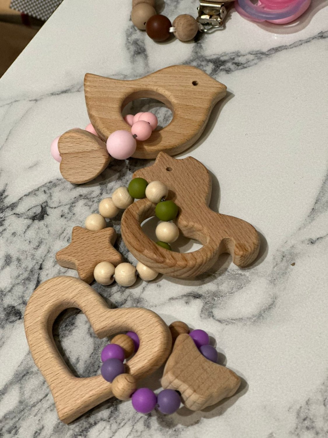 новорожденного легко умещается в маленькой ручке ребенка. Детки с удовольствием грызут деревянное колечко при прорезывании зубов, а натуральные хлопковые ушки имеют приятное шуршание, что тоже привлекает внимание ребенка и способствует развитию мелкой моторики.