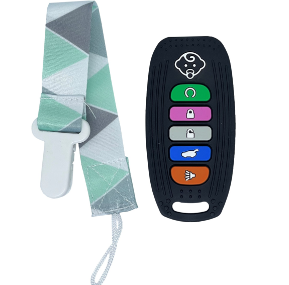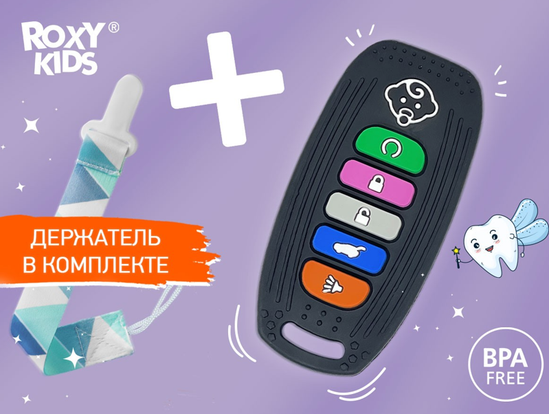 Реалистичный прорезыватель в виде пульта для автосигнализации - яркая и интересная игрушка, которая порадует вашего малыша и поможет снизить дискомфорт во время прорезывания зубов! Силиконовый пульт выглядит как настоящий и надолго увлечет малыша благодаря интерактивным кнопкам, которые можно нажимать. Рельефная поверхность эффективно массирует десны и зубки малыша, облегчая боль и зуд при появлении первых зубов. Использование прорезывателя поможет развить моторику рук, координацию движений, а также восприятие цвета и формы. Для еще большего удобства прорезыватель оснащен специальным отверстием для держателя и формой для приготовления льда с обратной стороны. Аксессуар изготовлен из гипоаллергенного пищевого силикона и подходит для ежедневного использования. В комплект входит держатель с надежной запатентованной клипсой, поэтому прорезыватель не упадет и не потеряется. Один конец держателя прикрепляется к прорезывателю, а второй при помощи специальной клипсы пристегивается к одежде ребенка. Держатель выполнен из двух слоев полиэстера, прочно сшитых вместе, поэтому он не износится и не порвется.