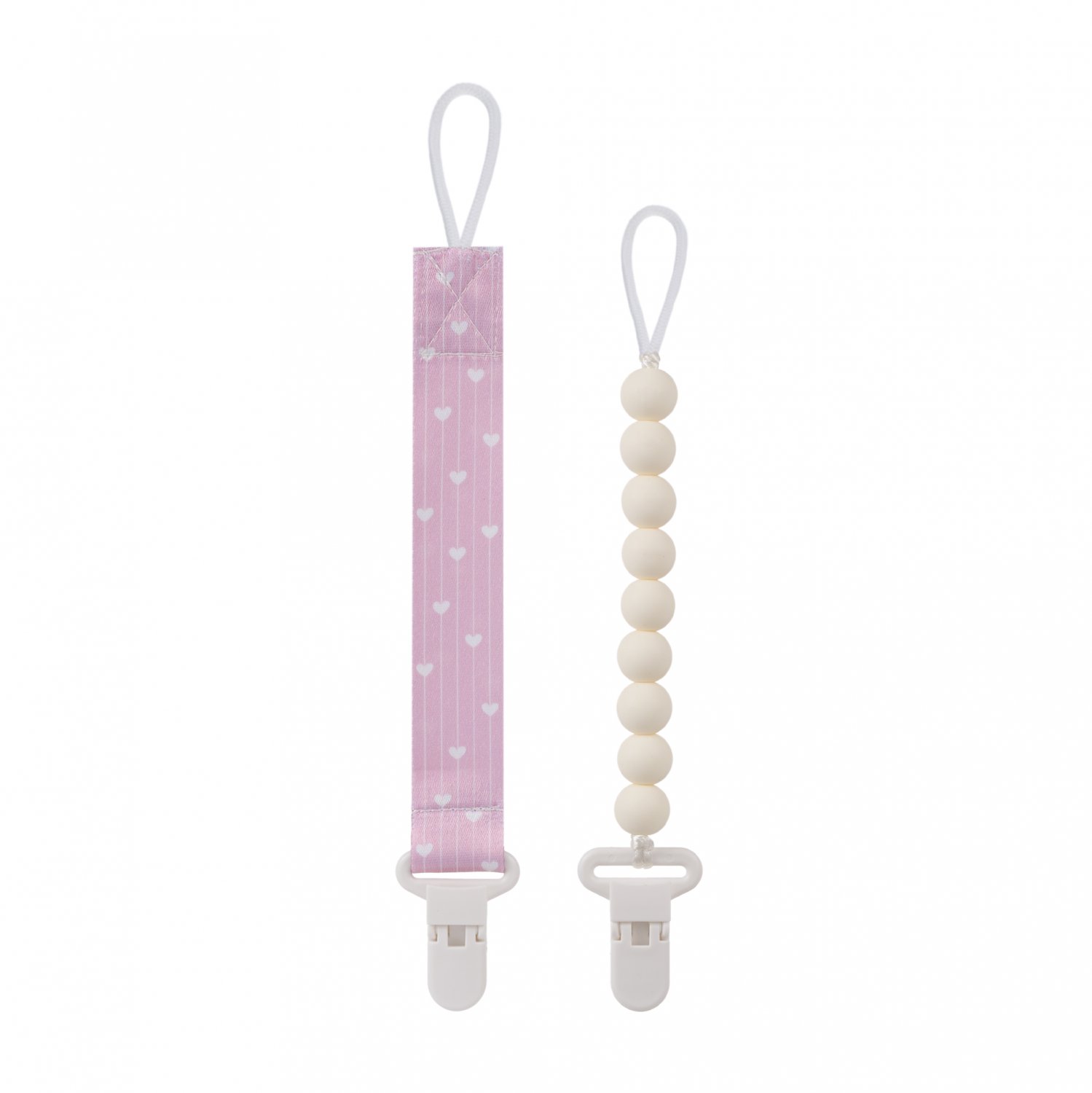 В наборе 2 держателя: тканевый (18 см без клипсы) и с силиконовыми шариками (11 шт-16 см без клипсы). Надежная пластиковая клипса. Держатель защитит предметы от падения, такие как пустышки, ниблеры, прорезыватели.