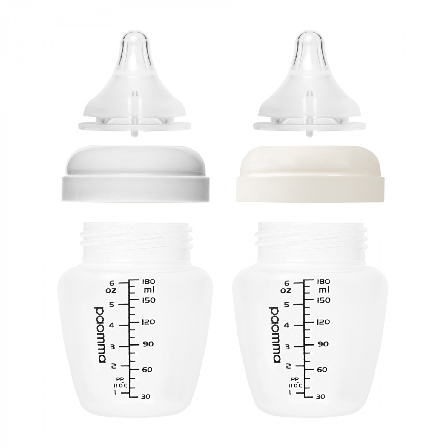 Набор бутылочек для кормления Paomma предназначена для малышей с первых дней жизни. Бутылочка с герметичной крышкой и ярко-прорисованной шкалой, которая начинается с 20 мл. Эксклюзивный и эргономичный дизайн, разработанный командой Paomma, в котором учли все требования от мам: удобно мыть руками и в посудомойке: широкий диаметр горлышка бутылки (5 см); удобно брать: легкий захват для ребенка и для мамы; нет коликам: антиколиковая соска с воздушным клапаном; нет слипанию: внутри соски расположены специальные ребра жесткости; имитация материнской груди: бархатистая структура mum effect; надежный захват соски: этому способствует комбинированная текстура (гладкая и бархатистая); безопасный состав: бутылочка - полипропилен; соска - 100% пищевой силикон. НЕ СОДЕРЖИТ: BPA, фталатов. Рекомендации по уходу: можно стерилизовать, кипятить - 5 минут, мыть в посудомоечной машине.