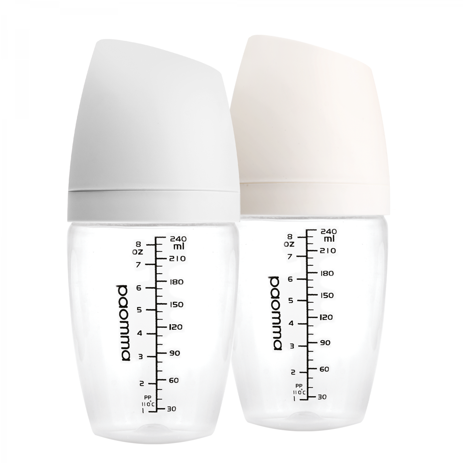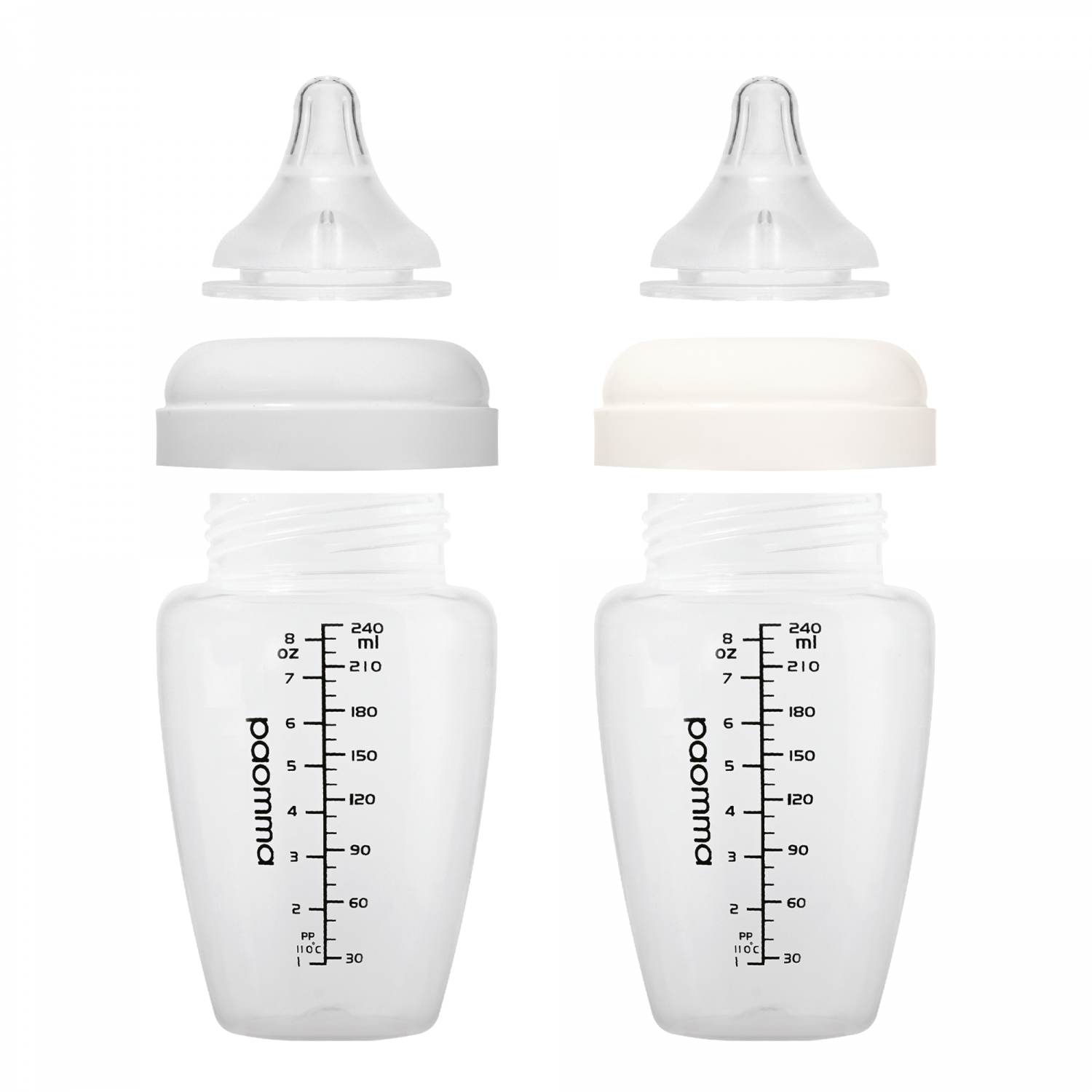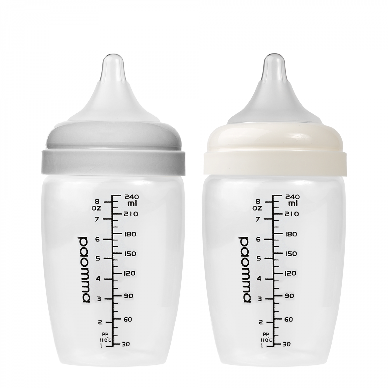 Набор бутылочек для кормления Paomma предназначена для малышей с первых дней жизни. Бутылочка с герметичной крышкой и ярко-прорисованной шкалой, которая начинается с 20 мл. Эксклюзивный и эргономичный дизайн, разработанный командой Paomma, в котором учли все требования от мам: удобно мыть руками и в посудомойке: широкий диаметр горлышка бутылки (5 см); удобно брать: легкий захват для ребенка и для мамы; нет коликам: антиколиковая соска с воздушным клапаном; нет слипанию: внутри соски расположены специальные ребра жесткости; имитация материнской груди: бархатистая структура mum effect; надежный захват соски: этому способствует комбинированная текстура (гладкая и бархатистая); безопасный состав: бутылочка - полипропилен; соска - 100% пищевой силикон. НЕ СОДЕРЖИТ: BPA, фталатов. Кормление с соской Paomma также естественно, как грудное вскармливание: сводит к минимуму отказ от груди. Также вы можете приобрести соски отдельно. Выберите оптимальный размер соски для Вашего ребенка: Размер S - 0,8 мм (0-3 месяцев), медленный поток; Размер М - 1 мм (3-6 месяцев), средний поток; Размер L - 1,2 мм (6-9 месяцев), быстрый поток; Размер XL - крестообразная (9+ месяцев), подходит для каш. Рекомендации по уходу: можно стерилизовать, кипятить - 5 минут, мыть в посудомоечной машине.