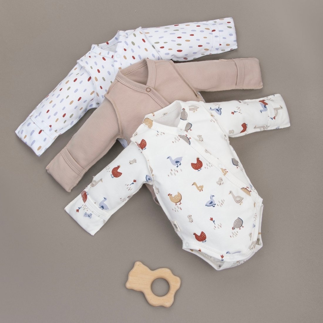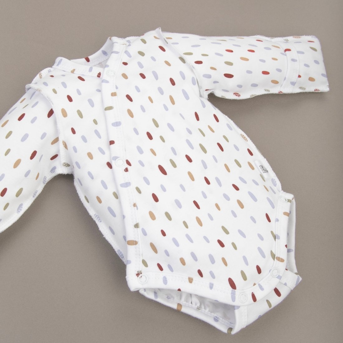 Боди с длинными рукавами. Рукав от линии ворота исключает натирание в проблемной плечевой-подмышечной зоне младенца.