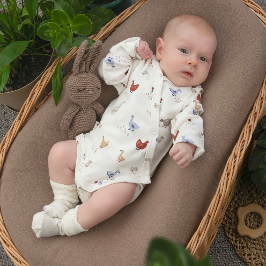 Боди с длинными рукавами. Рукав от линии ворота исключает натирание в проблемной плечевой-подмышечной зоне младенца.
