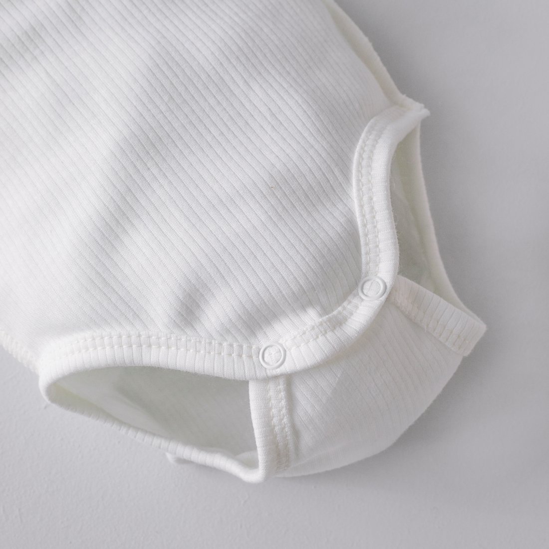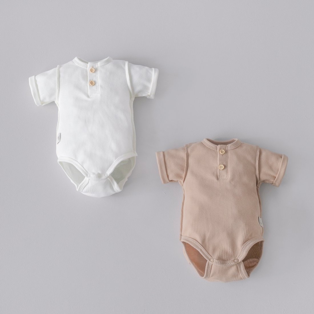 Боди имеет застежку на две пуговки по цетру и снизу на кнопки для смены памперса.
