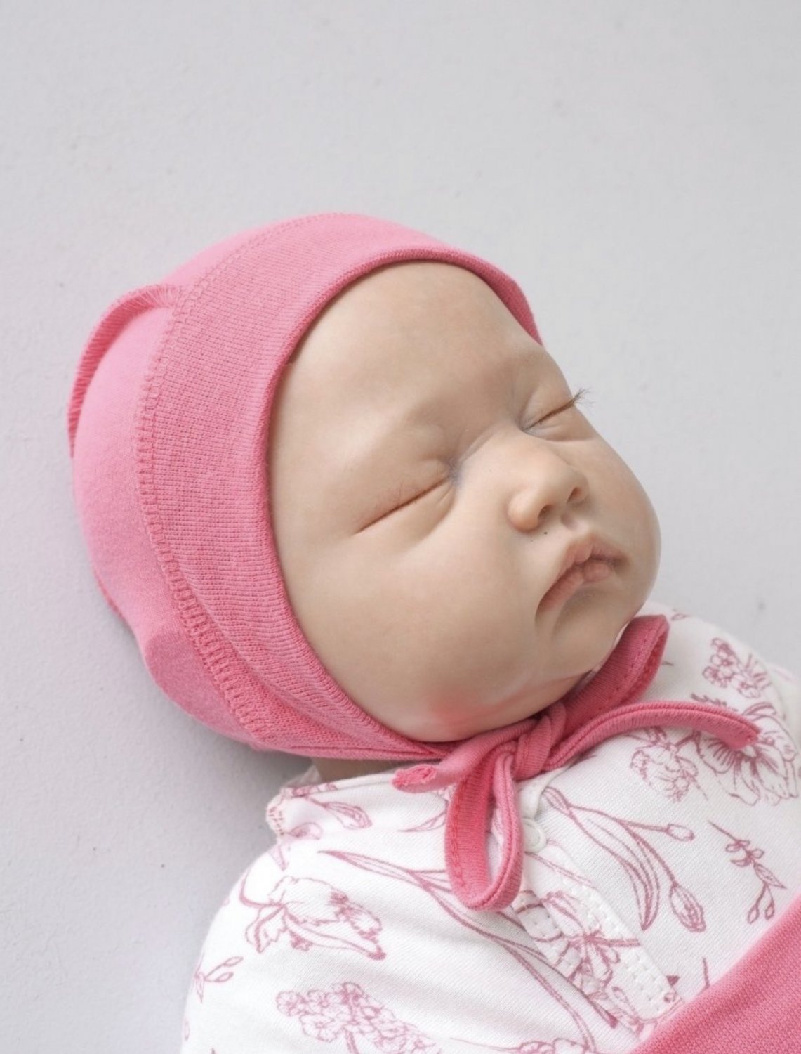 Чепчик из интерлока или кулирного полотна. Выполнен швом наружу.