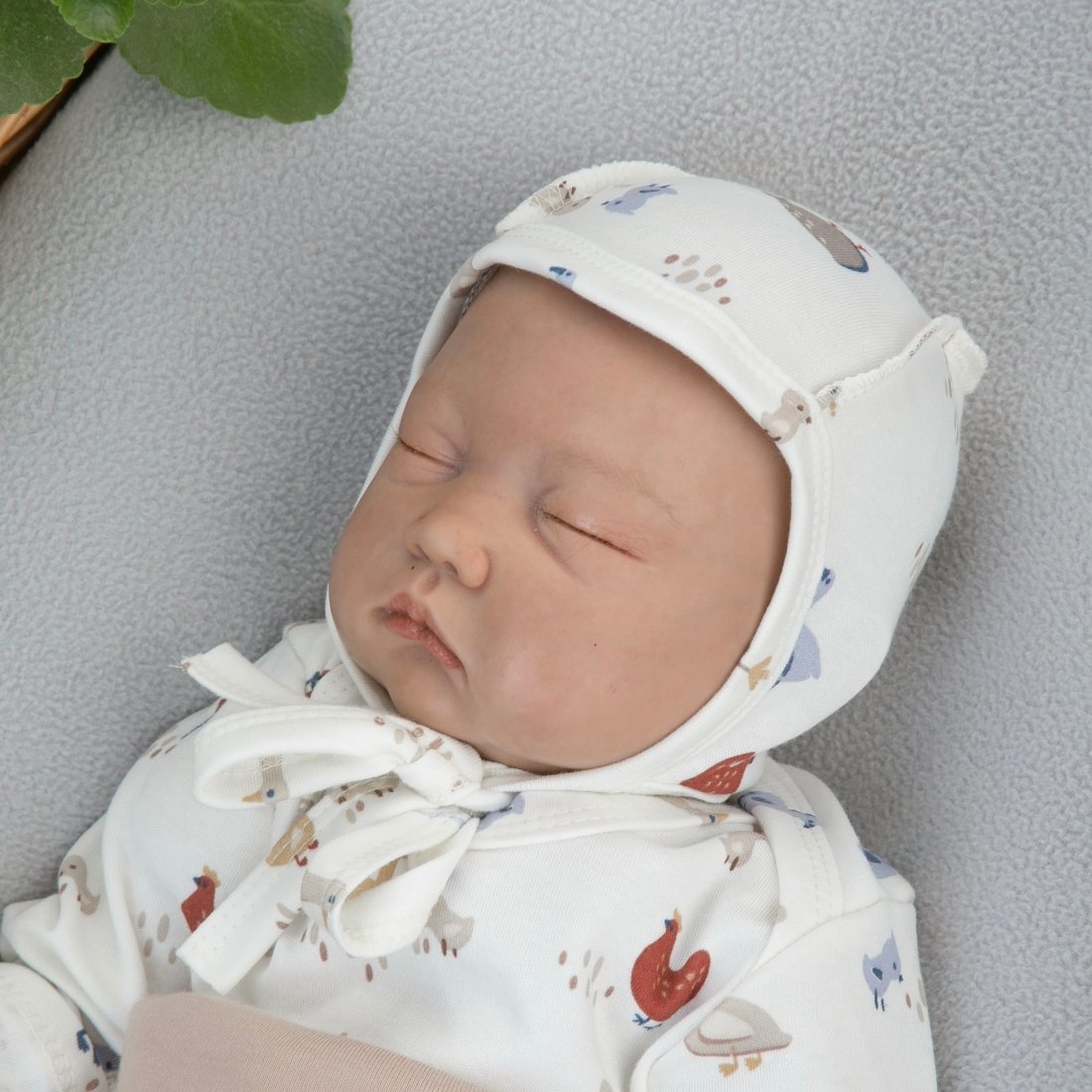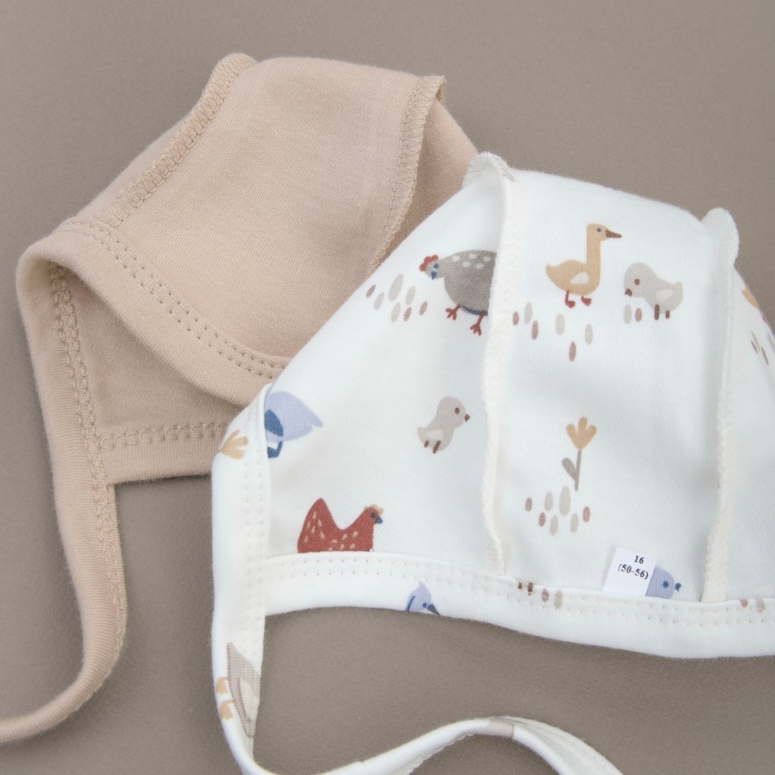 Швы наружу и средняя растяжимость полотна позволяют чепчику хорошо садиться по голове ребенка.