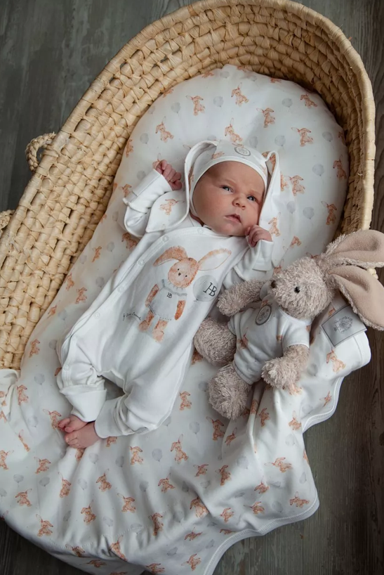 Комбинезон для новорождённых из мягкого и эластичного трикотажа, произведённого из натурального хлопка. Швы прострочены наружу, горловина выполнена из мягкого кашкорсе, рукава имеют отворачивающиеся манжеты-антицарапки, ножки закрыты. Комплект с кнопками-застежками: Плоские кнопки-застежки расположены таким образом, что родители не будут путаться, одевая малыша.