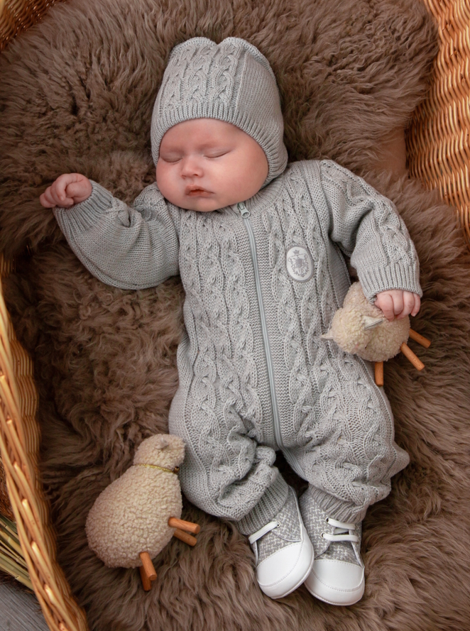 КОМПЛЕКТ 2 ПРЕДМЕТА "КОСЫ" КОМБИНЕЗОН + ШАПКА серый