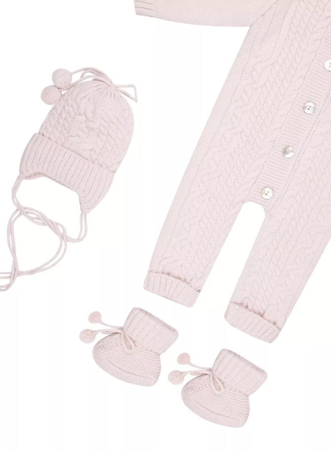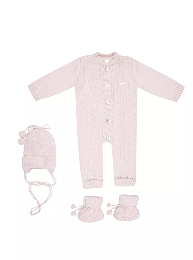 Комплект 3 предмета: комбинезон, шапочка и пинетки.