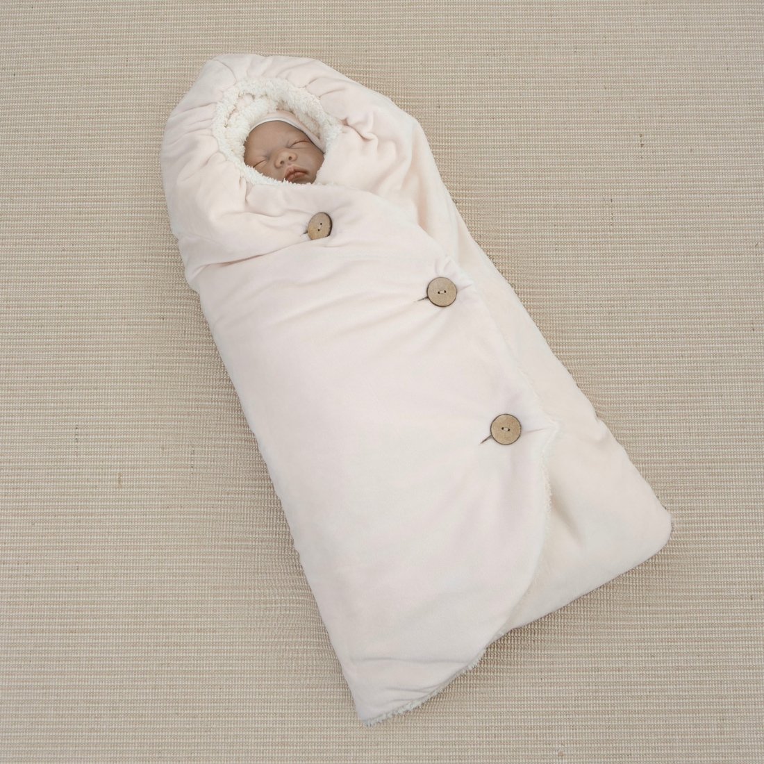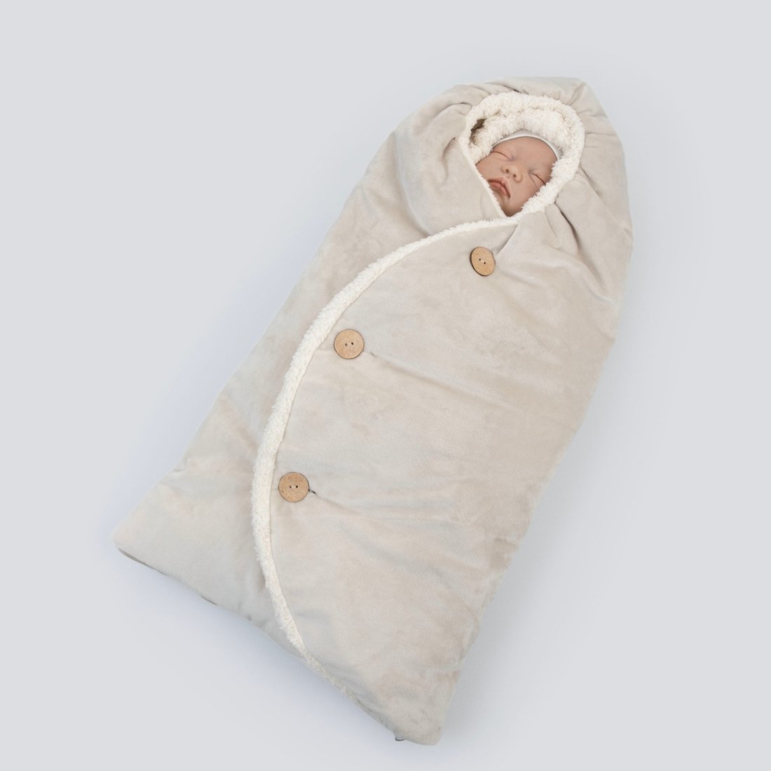 Состав одеяла-конверта: верх - велсофт (п/э 100%), наполнитель синтепон 200 г/м2, подклад - трикотаж кулир высшего качества (хлопок 100%)