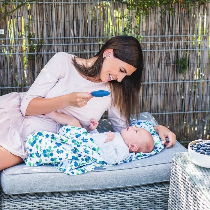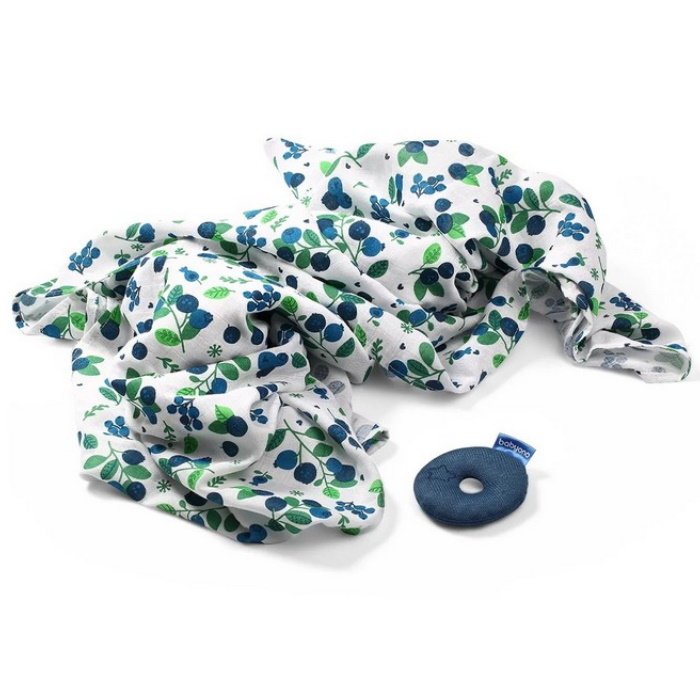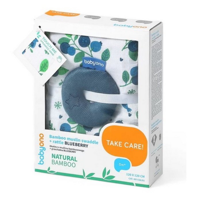 Набор Легкий плед муслиновый с бамбуком + погремушка черника