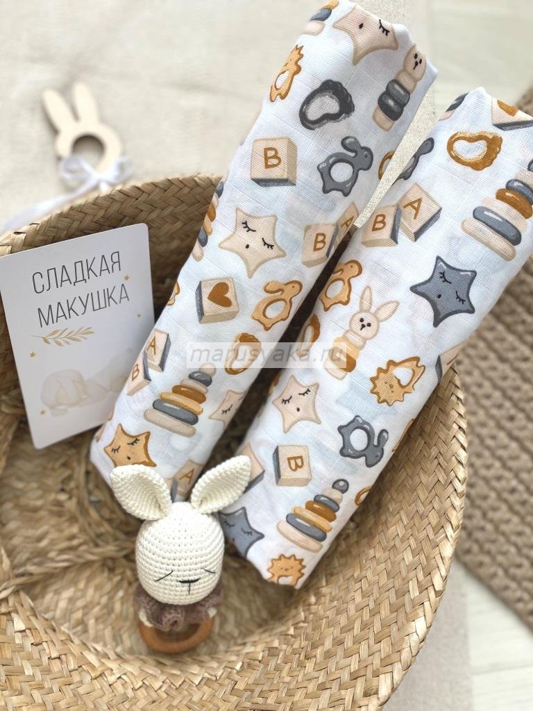 Пеленка муслин 1 слойная игрушки