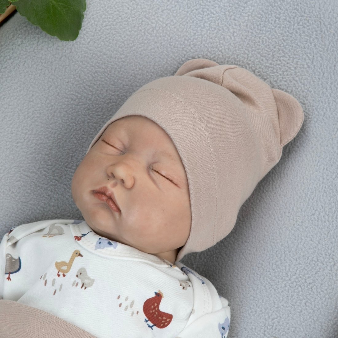 Шапочка легкая с отворотом и ушками "Зернышки" 1 шт капучино
