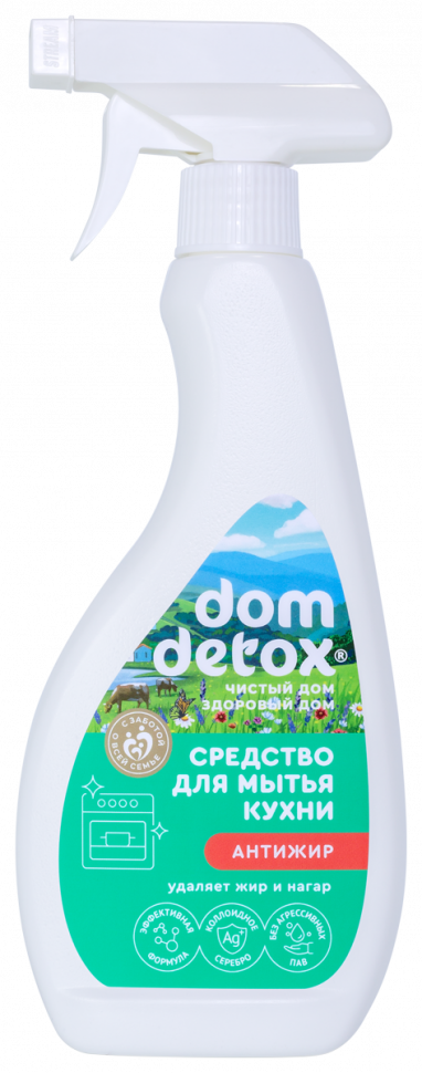 Средство для мытья кухни Антижир для удаления жира и нагара DOMDETOX Один цвет
