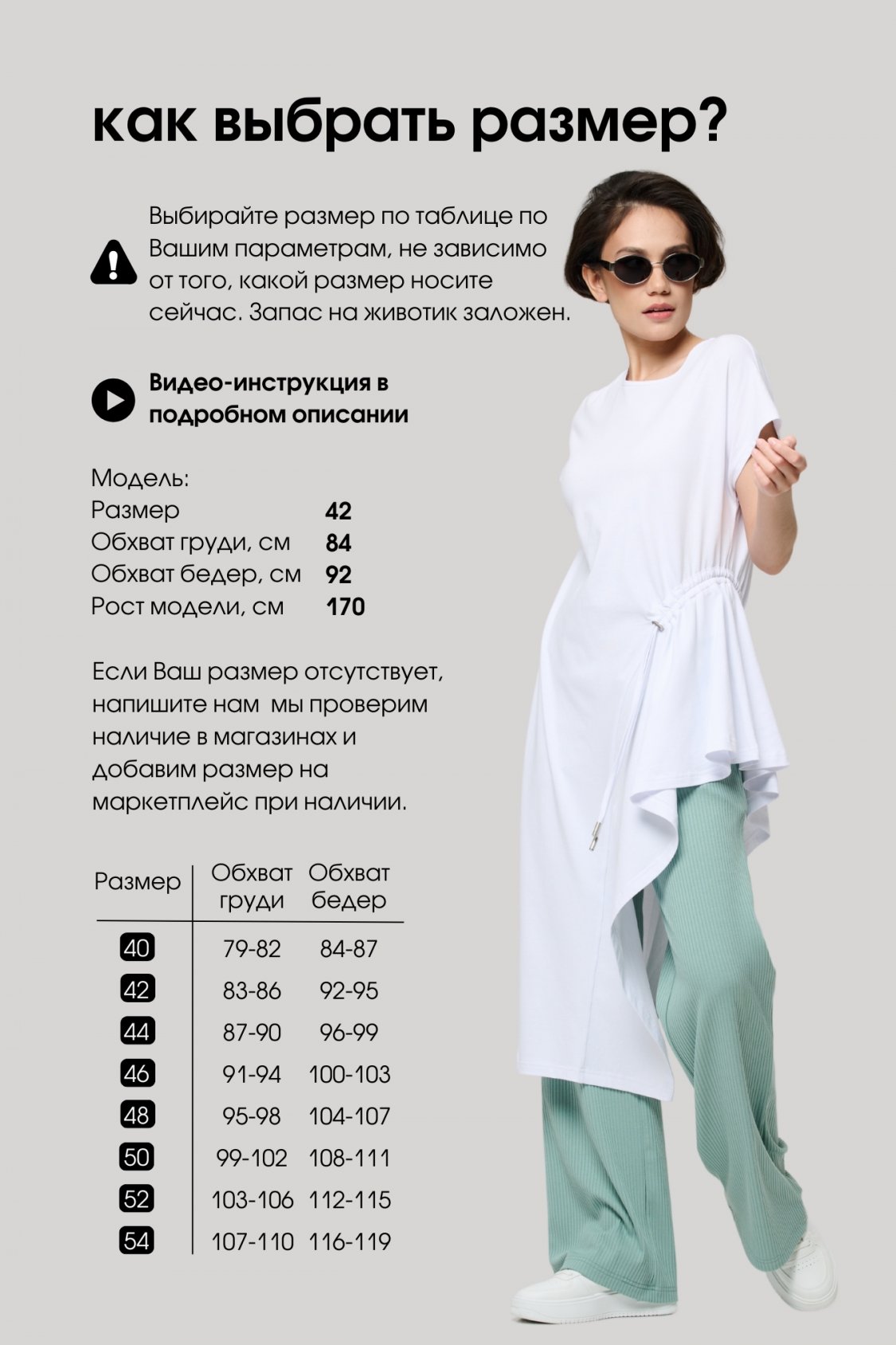 Брюки отлично сочетаются с базовым гардеробом - носите их с футболками, блузами или туниками. При оформлении заказа укажите, пожалуйста, мерки обхвата бедер, для точного подбора размера.