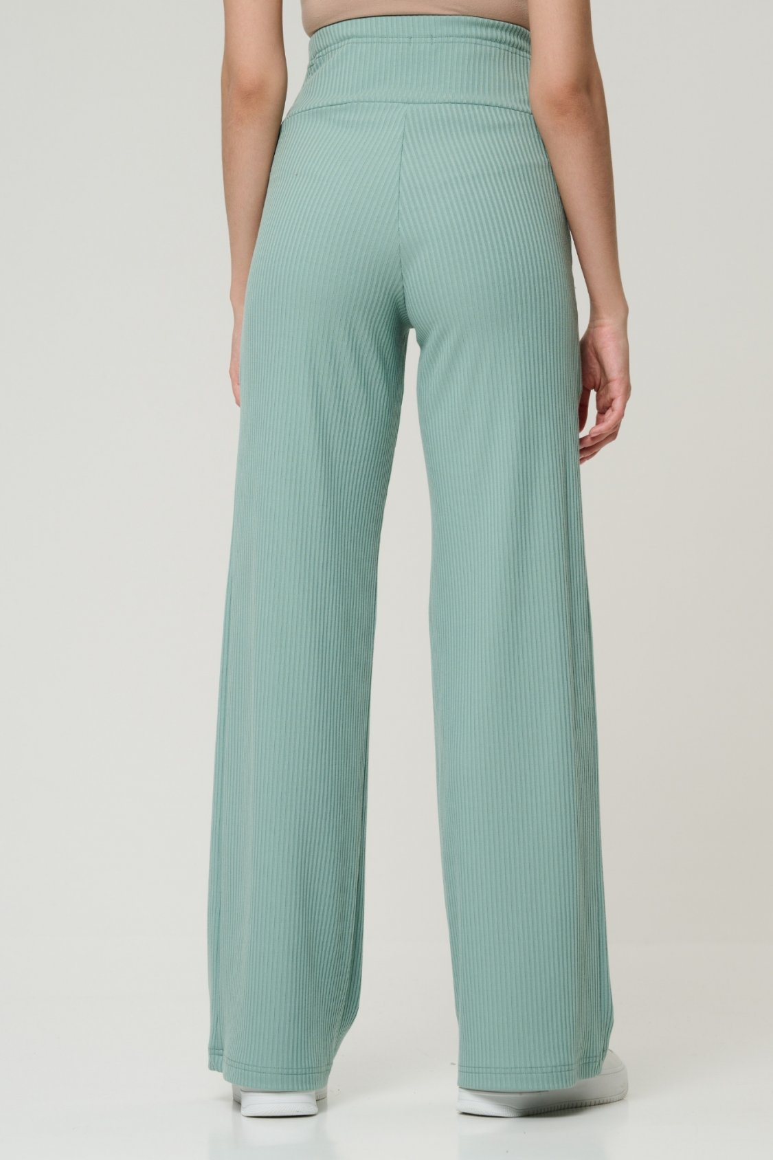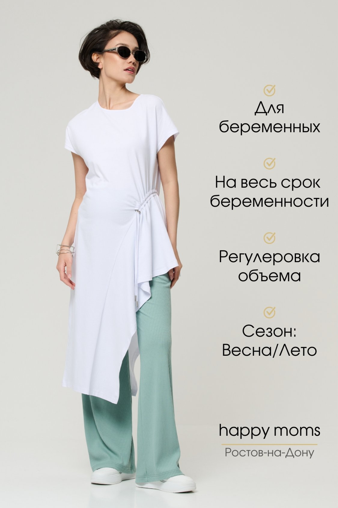 Широкий эластичный пояс адаптируется под растущий живот, а скрытая регулировка позволяет подогнать посадку индивидуально. Свободный крой создает элегантный силуэт, а боковые карманы добавляют удобства.