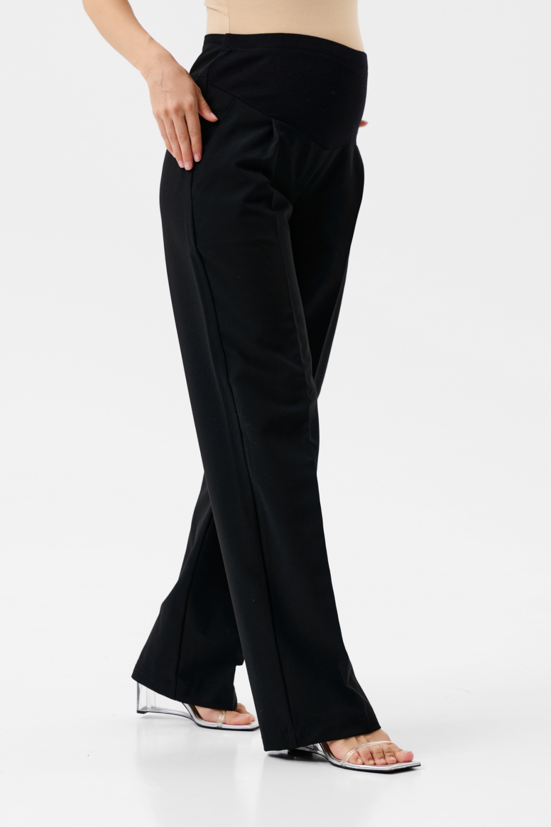 Брюки для беременных женщин кофейного оттенка просторного силуэта. Свободная модель из приятной ткани отличный вариант для будущей мамы. Модель имеет боковые и эффект прорезных карманов сзади, складочки спереди, соединенные с трикотажной вставкой, дают дополнительный объем для растущего животика. Пояс сзади широкий, модель со стрелками. Брюки для беременной хорошо сядут на фигуру на любом сроке беременности. При оформлении заказа укажите, пожалуйста, мерки обхвата бедер, для точного подбора размера.