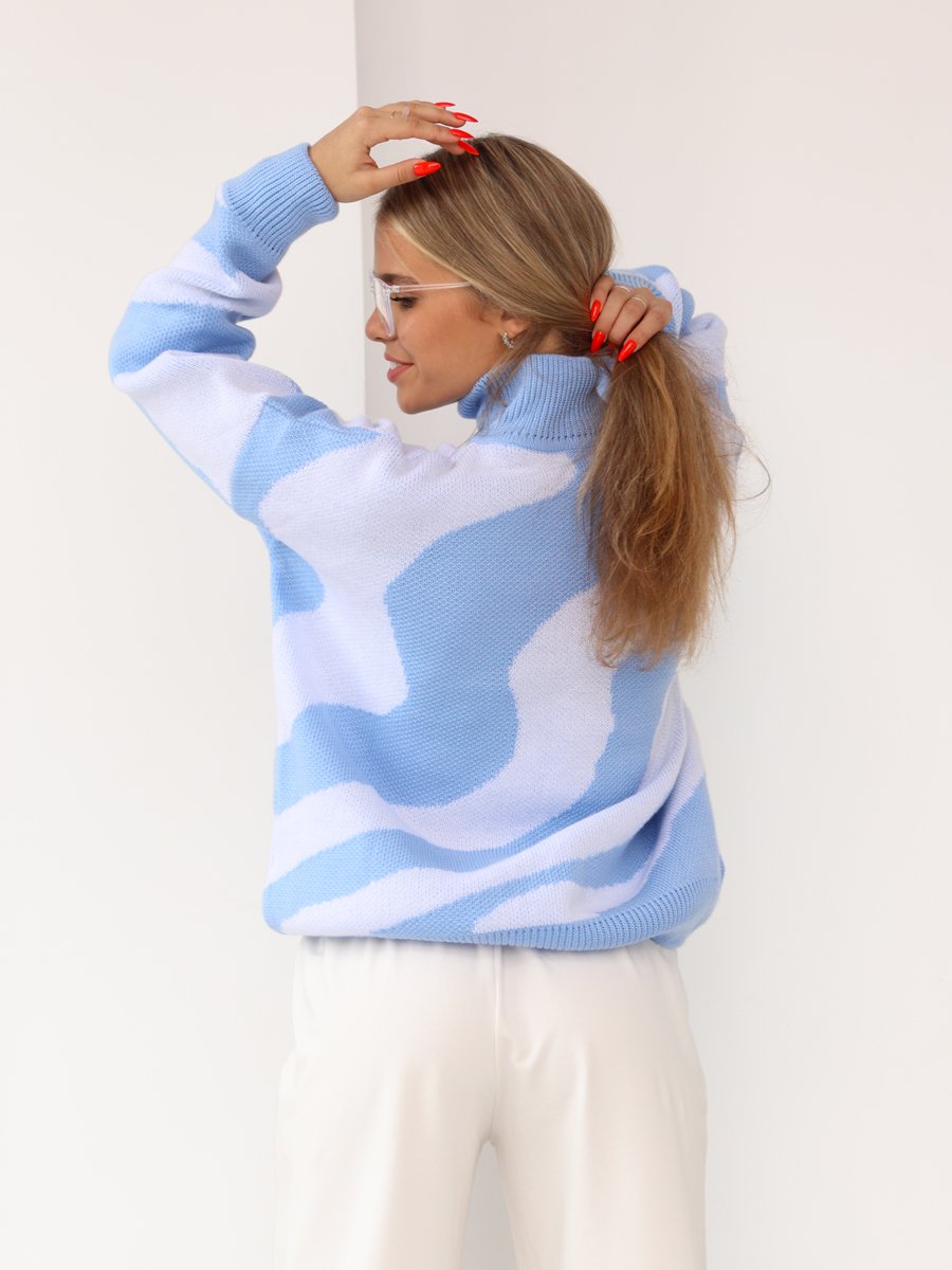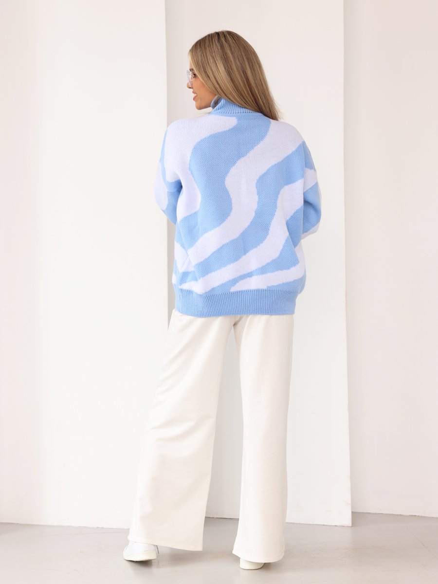 Свитер оверсайз, можно носить как в беременность, так и после нее. За счет содержания шерсти сохраняет тепло.Легко можно дополнить любыми вариантами низа (брюки, юбка, платье). Оригинальный модный принт изделия сделает модным ваш образ.