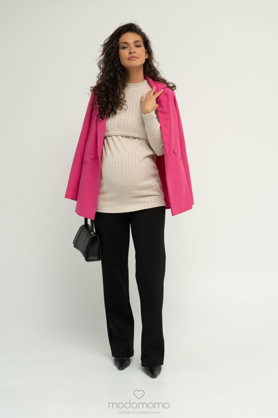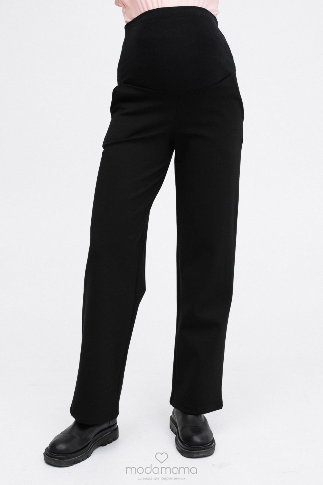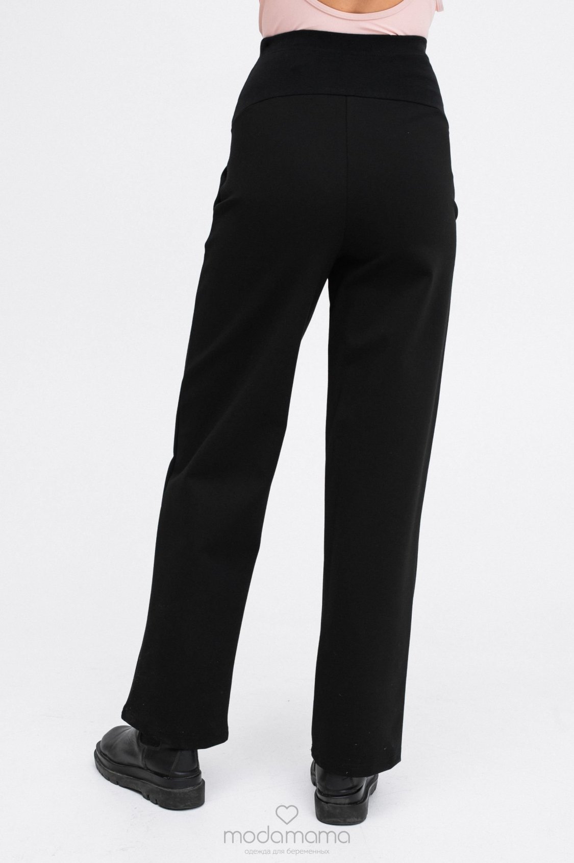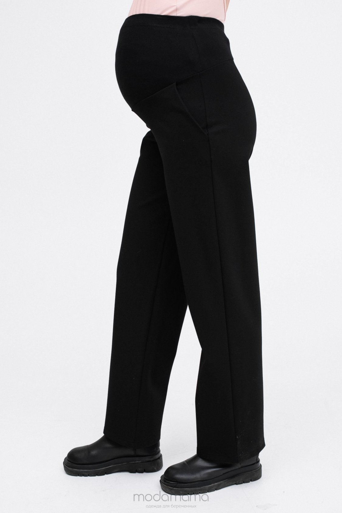 Стильные повседневные брюки для беременных широкого кроя с подкройными карманами по бокам. Высокий круговой трикотажный бандаж регулируется пуговкой по верху. Выполнены из тянущегося плотного трикотажа, с изнаночной стороны утеплены флисом.