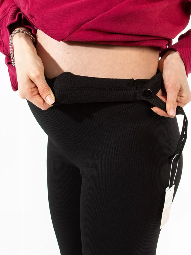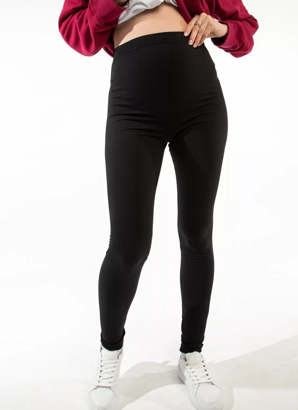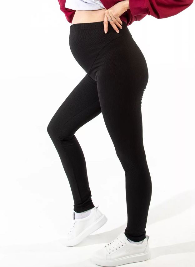 Лосины из хлопка с начесом в рубчик черный