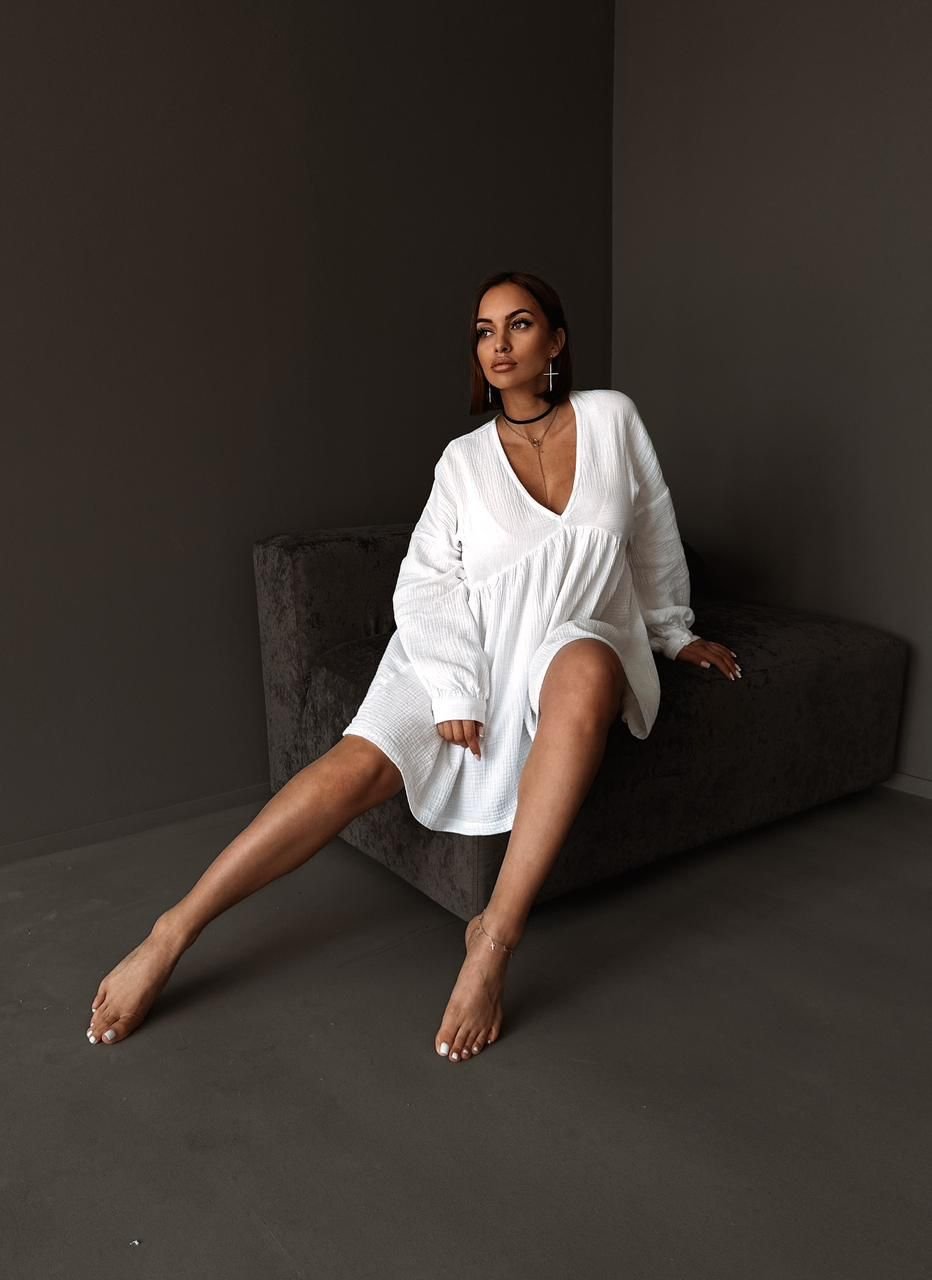 Летнее платье из мягкого, легкого, нежного муслина. Невероятный комфорт и легкость для летних дней. По фасону платье очень просторное, в тоже время, защищающее вас от прямых солнечных лучей. Можно носить во время и после беременности. Можно дополнять сандалями, шлепками, кедами.