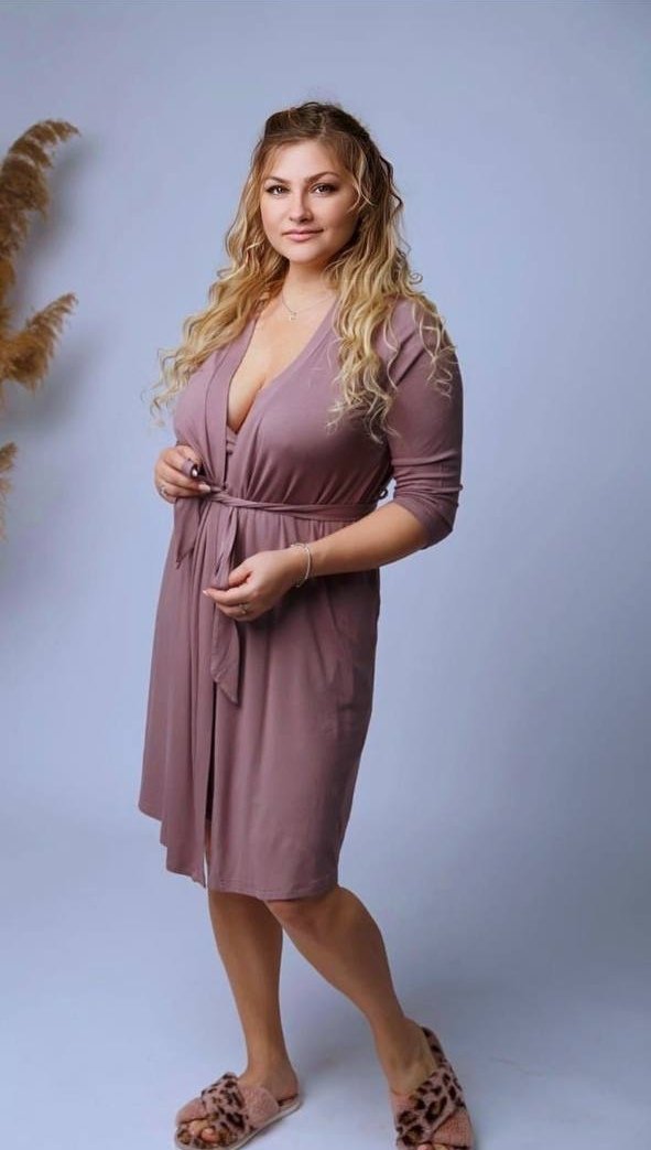 Халат домашний, на запах, с вшитым поясом. Ткань мягкий, эластичный хлопковый трикотаж. При оформлении заказа укажите, пожалуйста, мерки обхвата груди и бедер, для точного подбора размера.