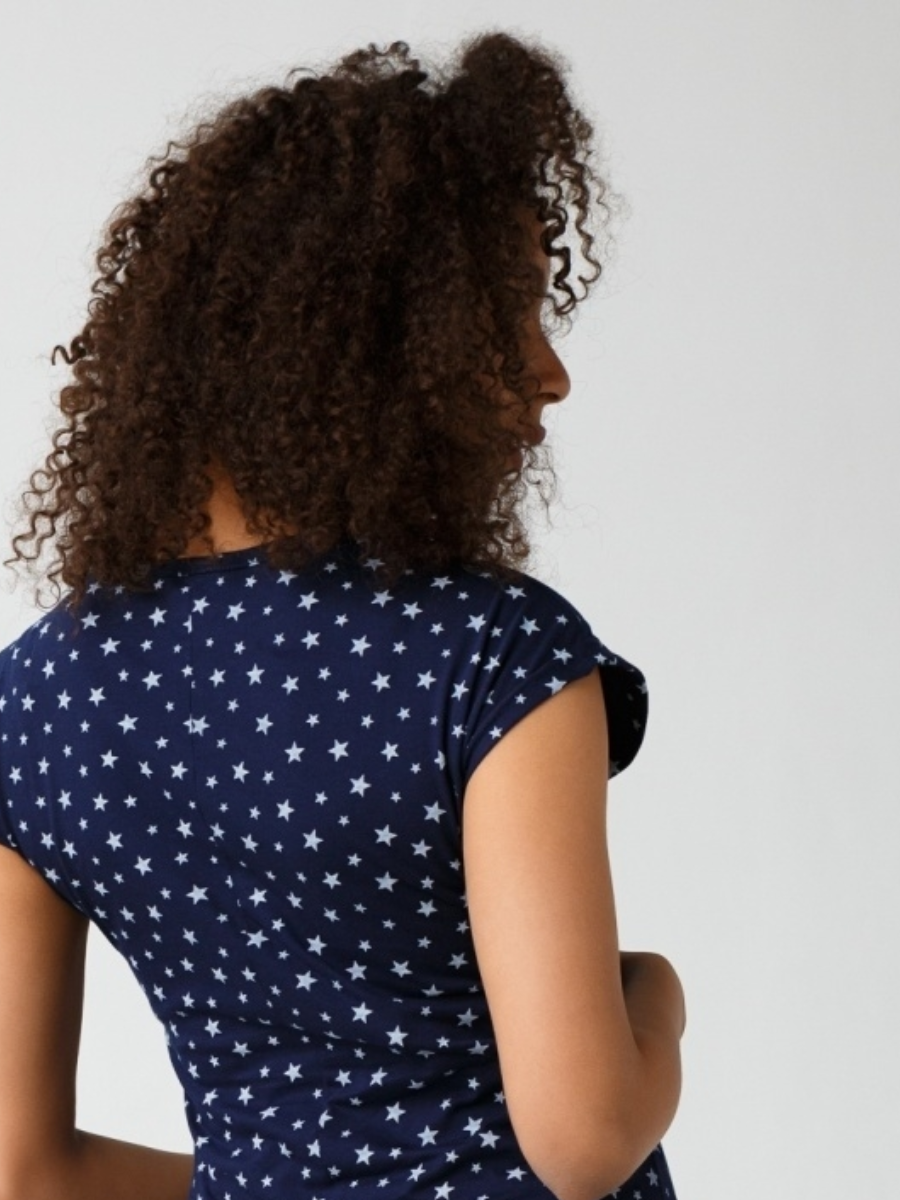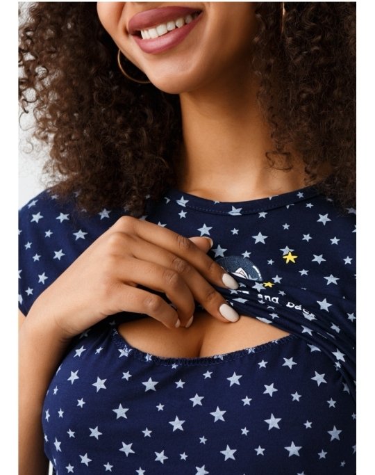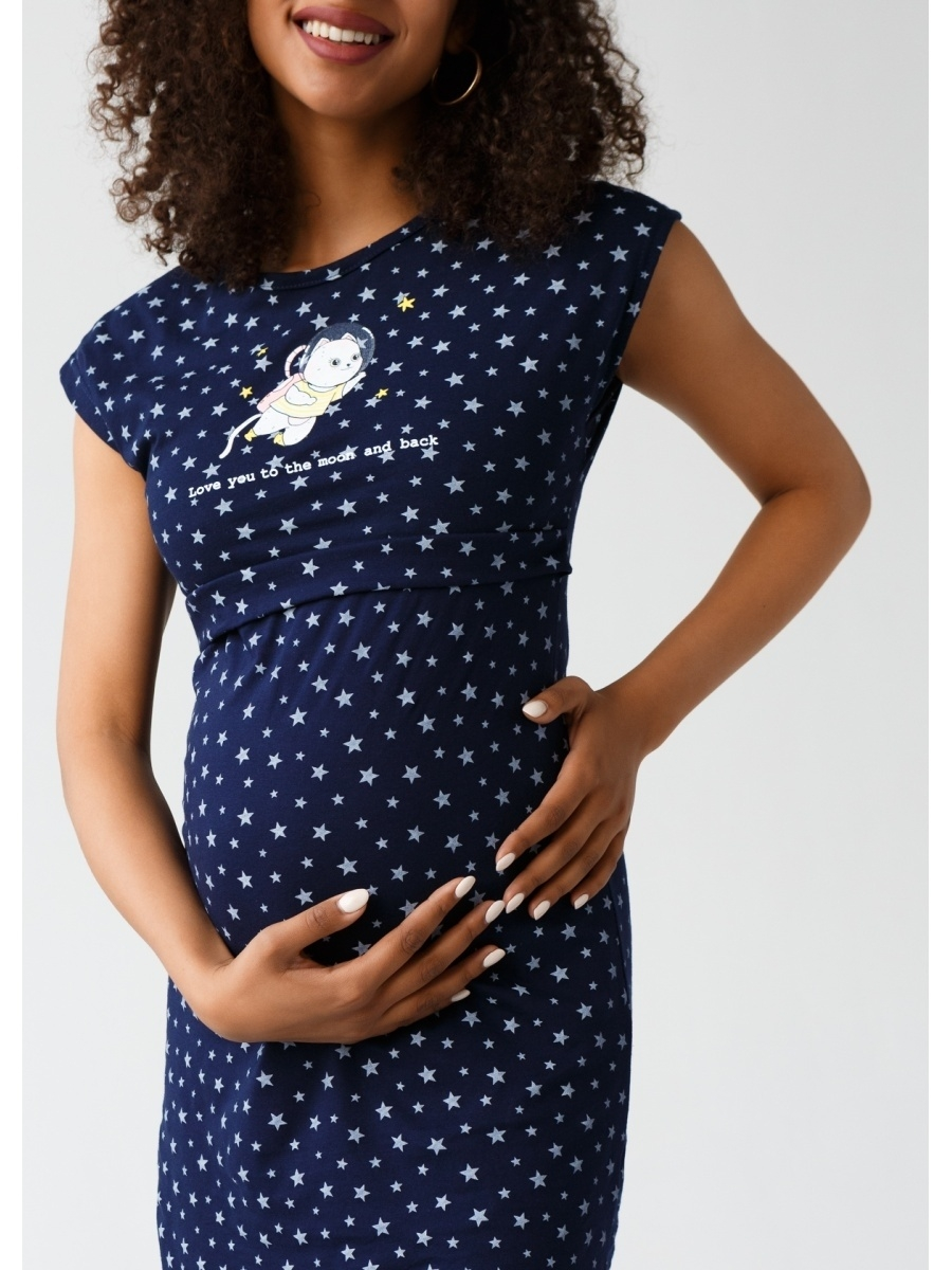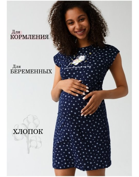 Платье - сорочка из мягкого хлопка с изящным кружевом создана для максимального комфорта будущих и кормящих мам. Удобство кормления: подрез под грудью Ткань: 100% хлопковый трикотаж (кулирка) Длина изделия: 90 см. При оформлении заказа укажите, пожалуйста, мерки обхвата груди и бедер, для точного подбора размера.