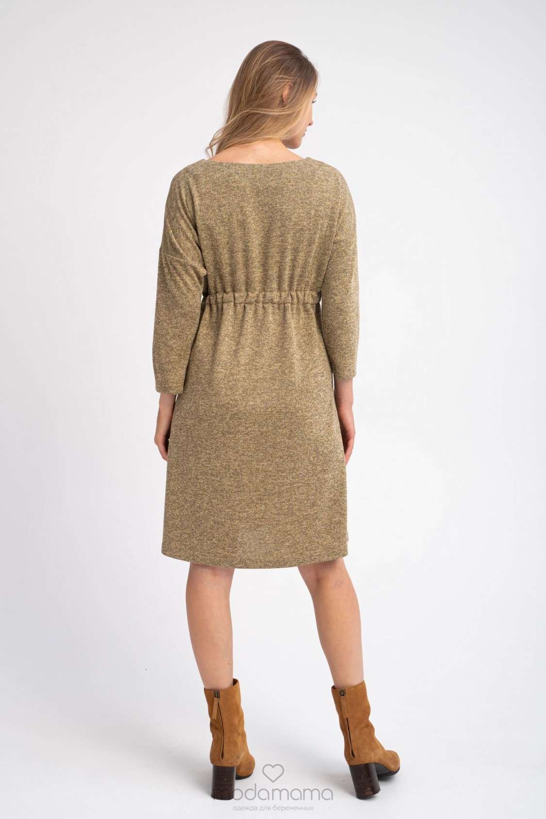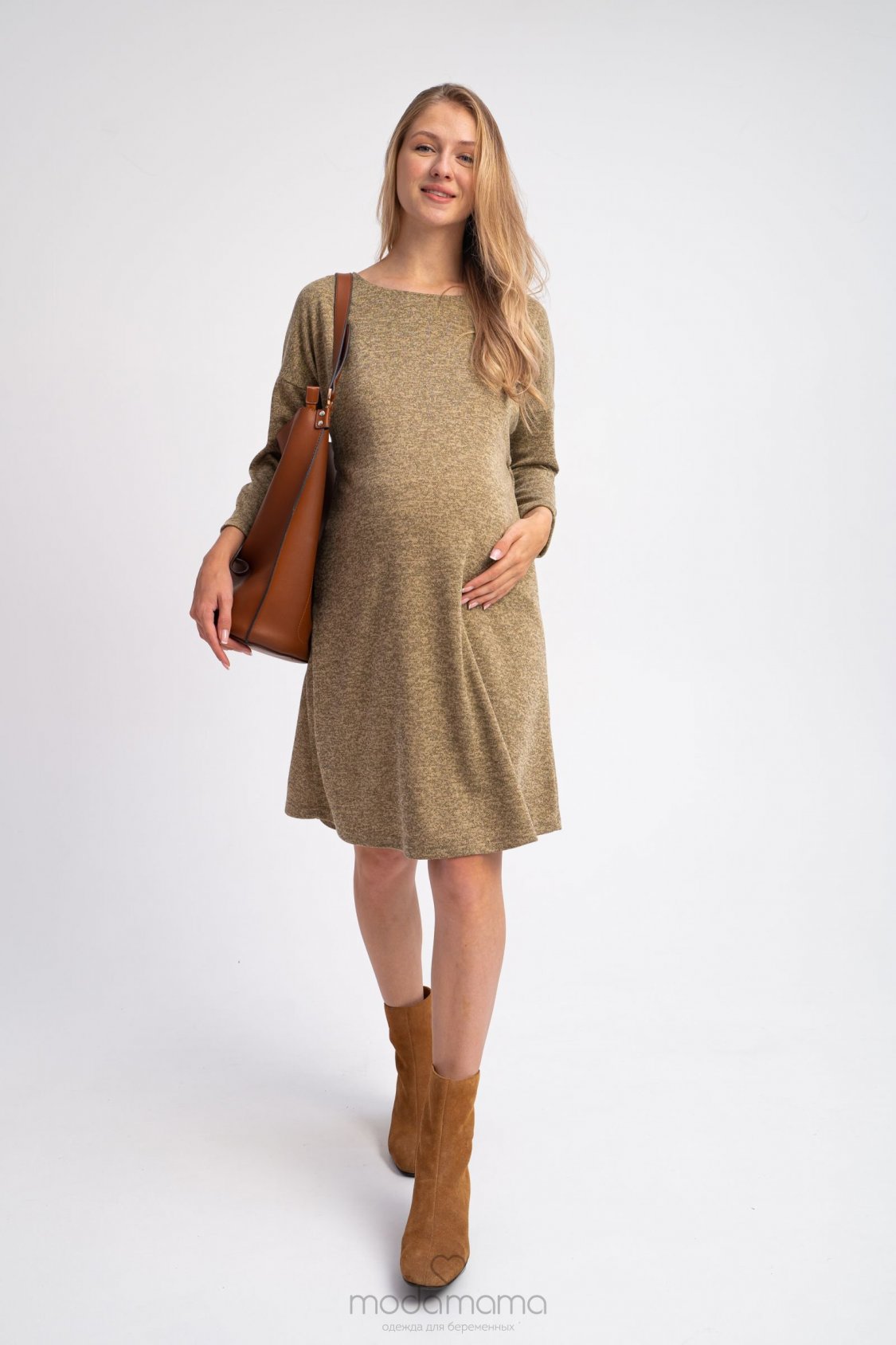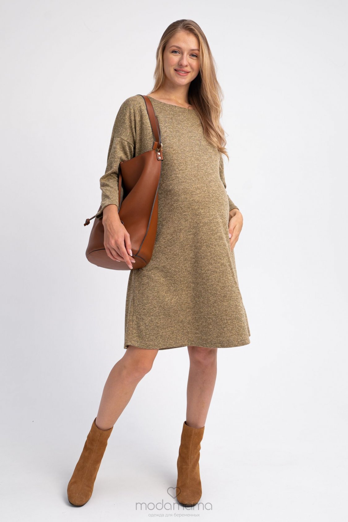 Платье для беременных А-силуэта со спущенным плечом. Выполнено из мягкого тёплого трикотажа, который хорошо тянется. При оформлении заказа укажите, пожалуйста, мерки обхвата груди и бедер, для точного подбора размера.
