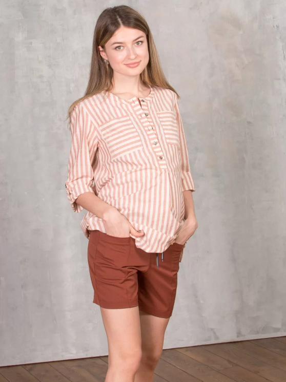 Современные модные шорты из эластичной костюмной ткани похожей на коттон. Очень похожи на джинсовые. Ткань хорошо тянется, но держит форму, прекрасно садится по фигуре. Модель шорт классическая, короткая не зауженная. Пояс шорт занижен спереди под живот и выполнен из широкой резинки, дублируется функциональными завязками. Спереди шорты рельефно-отрезные с большими карманами. Сзади без карманов. Шорты можно носить и после беременности. Они очень удобные и комфортные. При оформлении заказа укажите, пожалуйста, мерки обхвата бедер, для точного подбора размера.