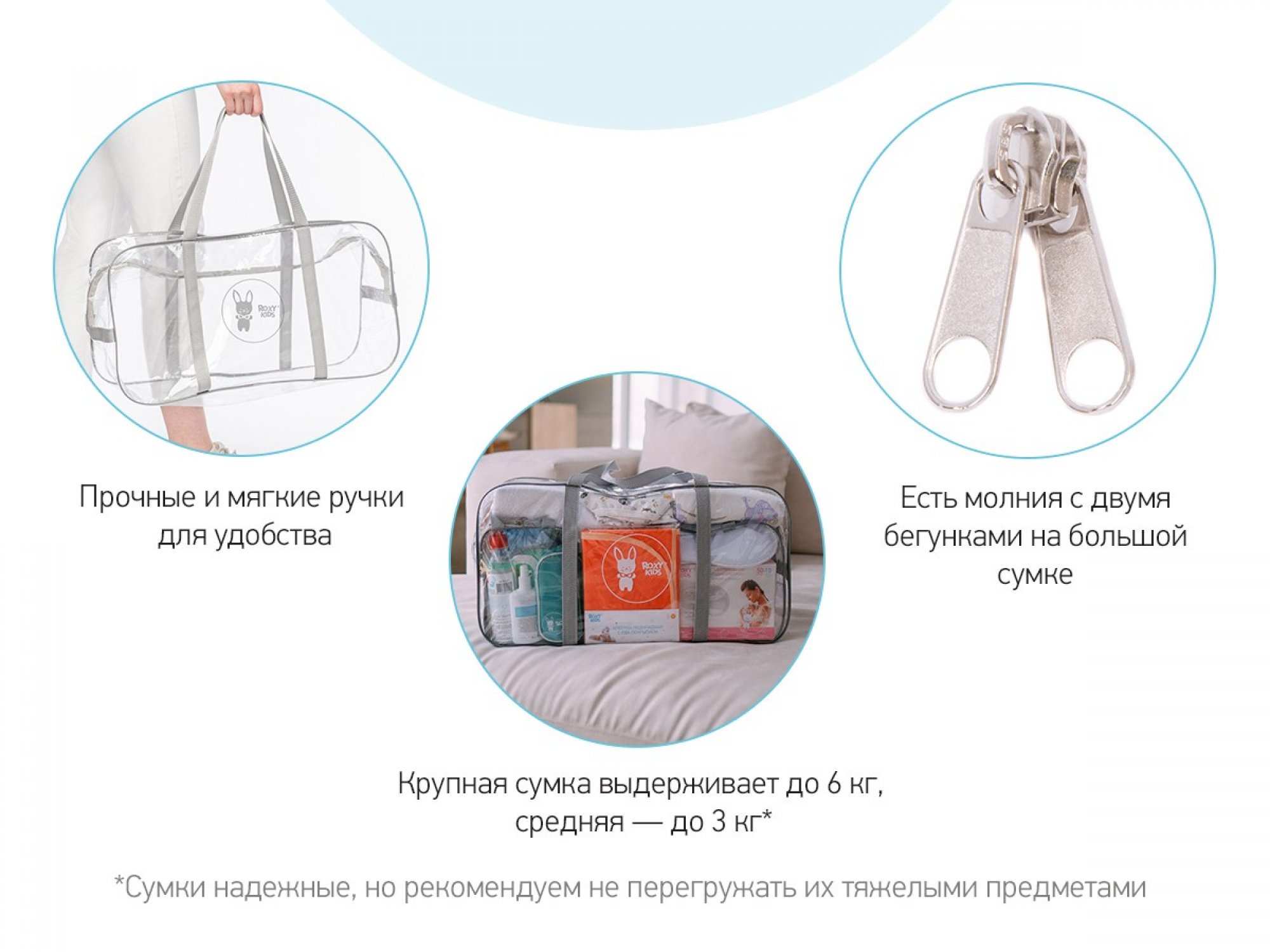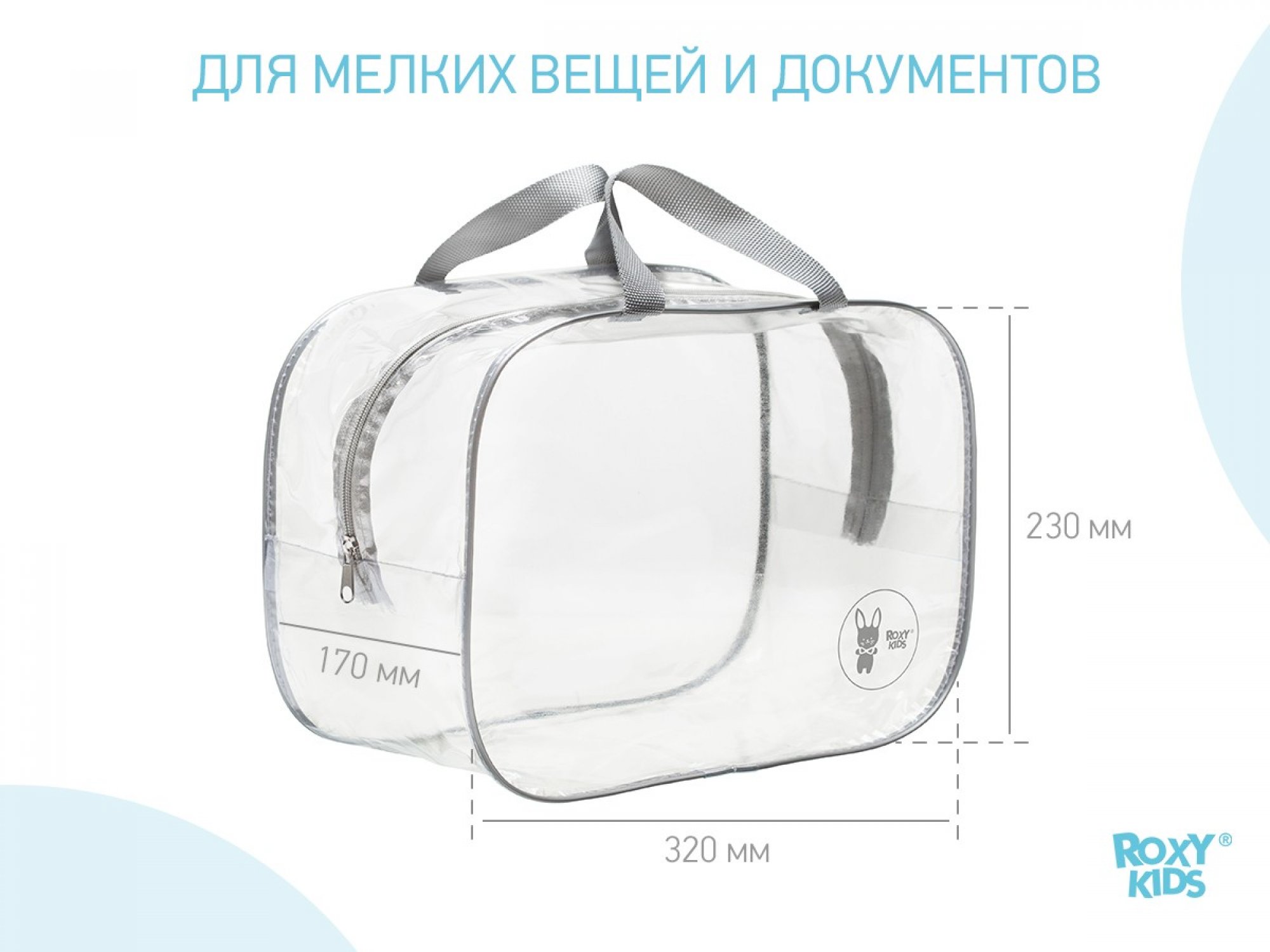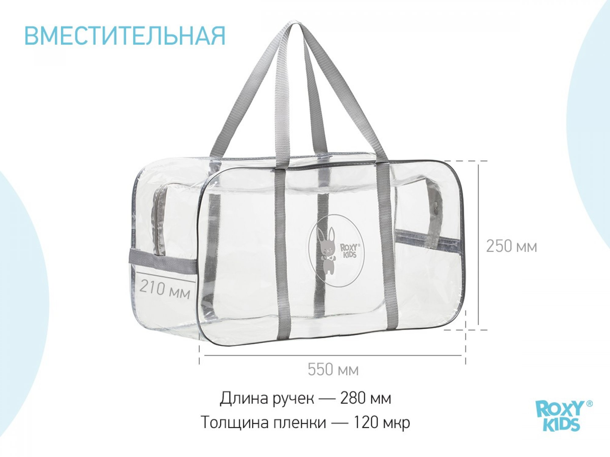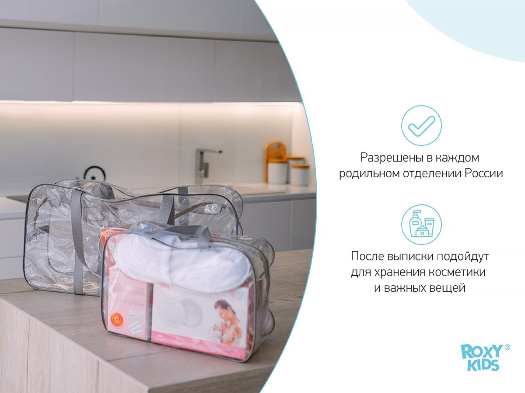 Прозрачная сумка в роддом ROXY-KIDS - нужный и полезный аксессуар, который поможет будущей маме подготовиться к встрече с малышом. Комплект из 2-х штук позволит вместить все необходимое: товары для мамы до и после родов, вещи для новорожденного, предметы гигиены, документы и медикаменты. Сумки сертифицированы в Eurofins и разрешены в родильных домах и лечебных учреждениях.