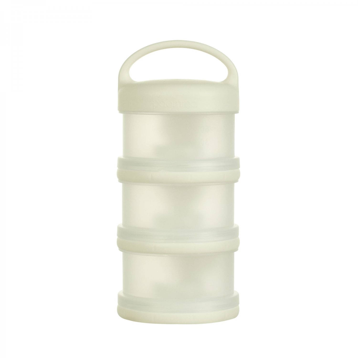Контейнер состоит из 3 отделений. Каждое отделение имеет специальную воронку с крышкой, что позволяет каждое отделение использовать отдельно и легко высыпать смесь в бутылочку. Контейнер удобно брать с собой в дорогу или подготовить несколько порций смеси для кормления на ночь. Так же контейнеры можно использовать для перекуса, ягод, печенья. Компактный, не занимает много места в сумке. Изготовлен из 100% полипропилена, не содержит бисфенола А, ПВХ и фталатов