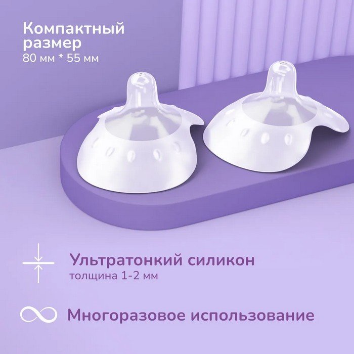 Накладки на грудь используются при грудном вскармливании детей для максимального комфорта Матери и защиты кожи сосков при кормлении ребёнка. Выполнены из ультратонкого материала, который максимально сохраняет тактильные и вкусовые ощущения во время кормления. Диаметр основания соска 22 мм, размер М. 2 шт. в удобном кейсе для хранения и стерилизации.Треугольная форма обеспечивает максимально плотный контакт с грудью. Мягкие шишечки для нежного массажа. Три отверстия дают естественный поток молока.
