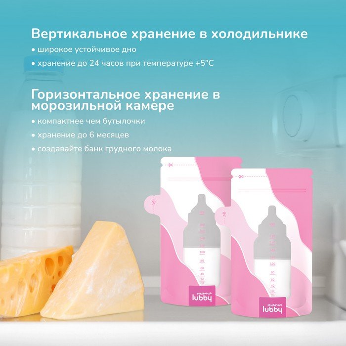 Пакеты для молока mama lubby предназначены для хранения и заморозки грудного молока. Пакеты стерильны и полностью готовы к использованию. Пакеты с молоком можно хранить как в горизонтальном положении, так и в вертикальном, благодаря наличию донышка. Благодаря широкому горлышку пакет удобно наполнять молоком и переливать молоко из него. На пакете предусмотрена специальное поле, предназначенное для подписи объёма и даты сцеживания. Пакеты не имеют запаха и предназначены для одноразового использования. Объём пакета - 200 мл.
