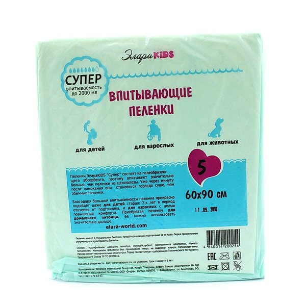 Пелёнки впитывающие Супер 60*90 (5 шт.) Один цвет