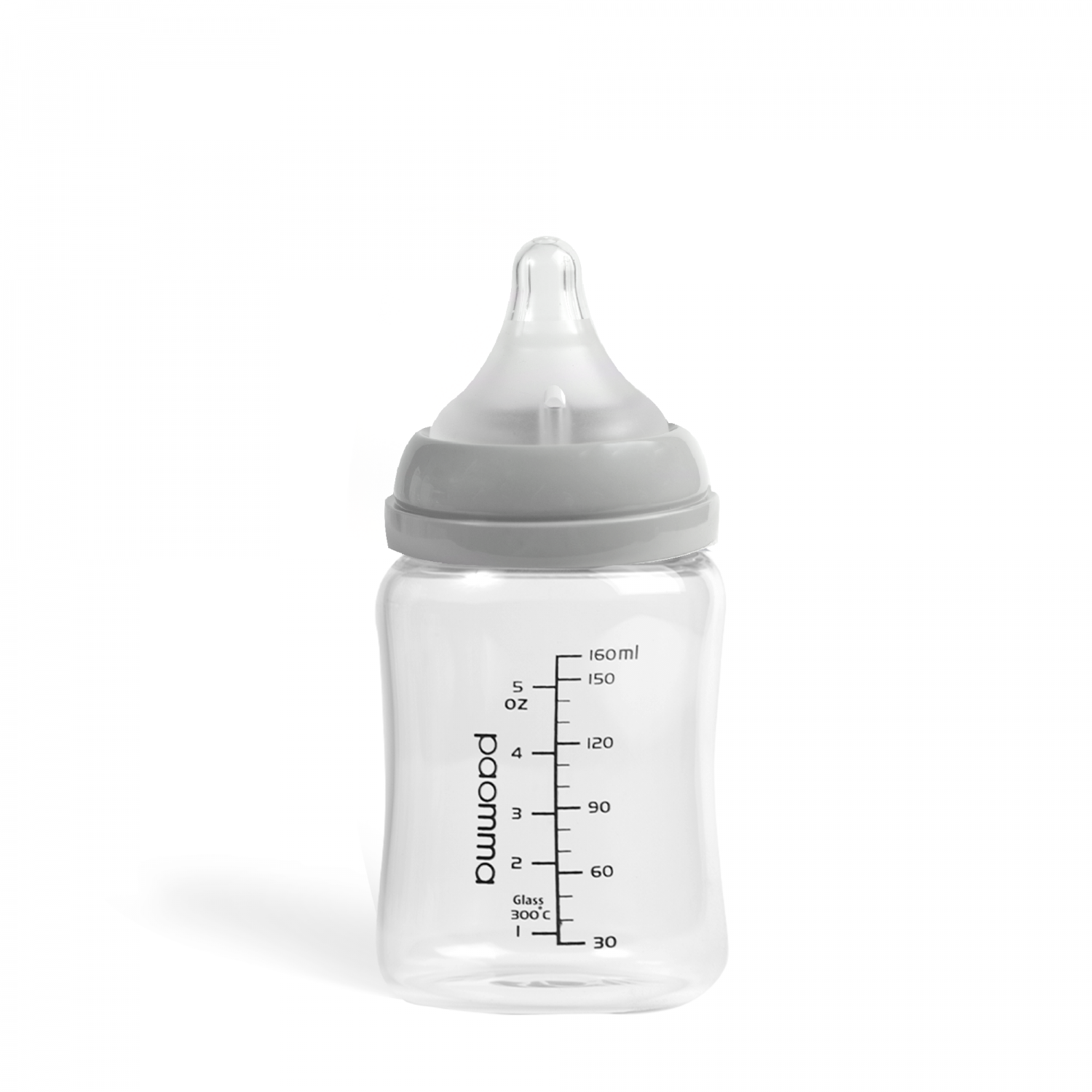 Детская бутылочка для кормления Paomma предназначена для малышей с первых дней жизни. Бутылочка с герметичной крышкой и ярко-прорисованной шкалой, которая начинается с 20 мл. Эксклюзивный и эргономичный дизайн, разработанный командой Paomma, в котором учли все требования от мам: удобно мыть руками и в посудомойке: широкий диаметр горлышка бутылки (5 см); удобно брать: легкий захват для ребенка и для мамы; нет коликам: антиколиковая соска с воздушным клапаном; нет слипанию: внутри соски расположены специальные ребра жесткости; имитация материнской груди: бархатистая структура mum effect; надежный захват соски: этому способствует комбинированная текстура (гладкая и бархатистая); безопасный состав: бутылочка - стекло; соска - 100% пищевой силикон. НЕ СОДЕРЖИТ: BPA, фталатов. Кормление с соской Paomma также естественно, как грудное вскармливание: сводит к минимуму отказ от груди. Также вы можете приобрести соски отдельно. Выберите оптимальный размер соски для Вашего ребенка: Размер S - ? 0,8 мм (0-3 месяцев), медленный поток; Размер М - ? 1 мм (3-6 месяцев), средний поток; Размер L - ? 1,2 мм (6-9 месяцев), быстрый поток; Размер XL - крестообразная (9+ месяцев), подходит для каш. Рекомендации по уходу: можно стерилизовать, кипятить - 5 минут, мыть в посудомоечной машине.