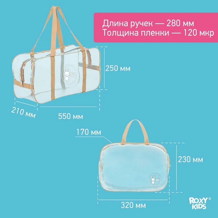 Прозрачная сумка в роддом ROXY-KIDS - нужный и полезный аксессуар, который поможет будущей маме подготовиться к встрече с малышом. Комплект из 2-х штук позволит вместить все необходимое: товары для мамы до и после родов, вещи для новорожденного, предметы гигиены, документы и медикаменты. Сумки сертифицированы в Eurofins и разрешены в родильных домах и лечебных учреждениях.
