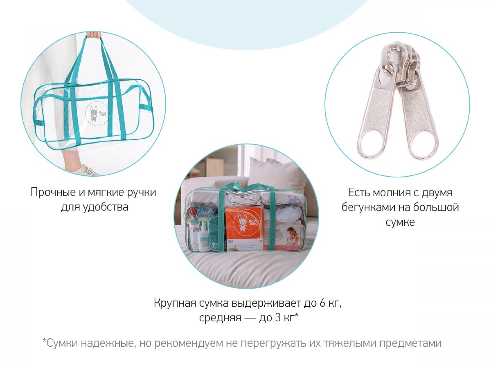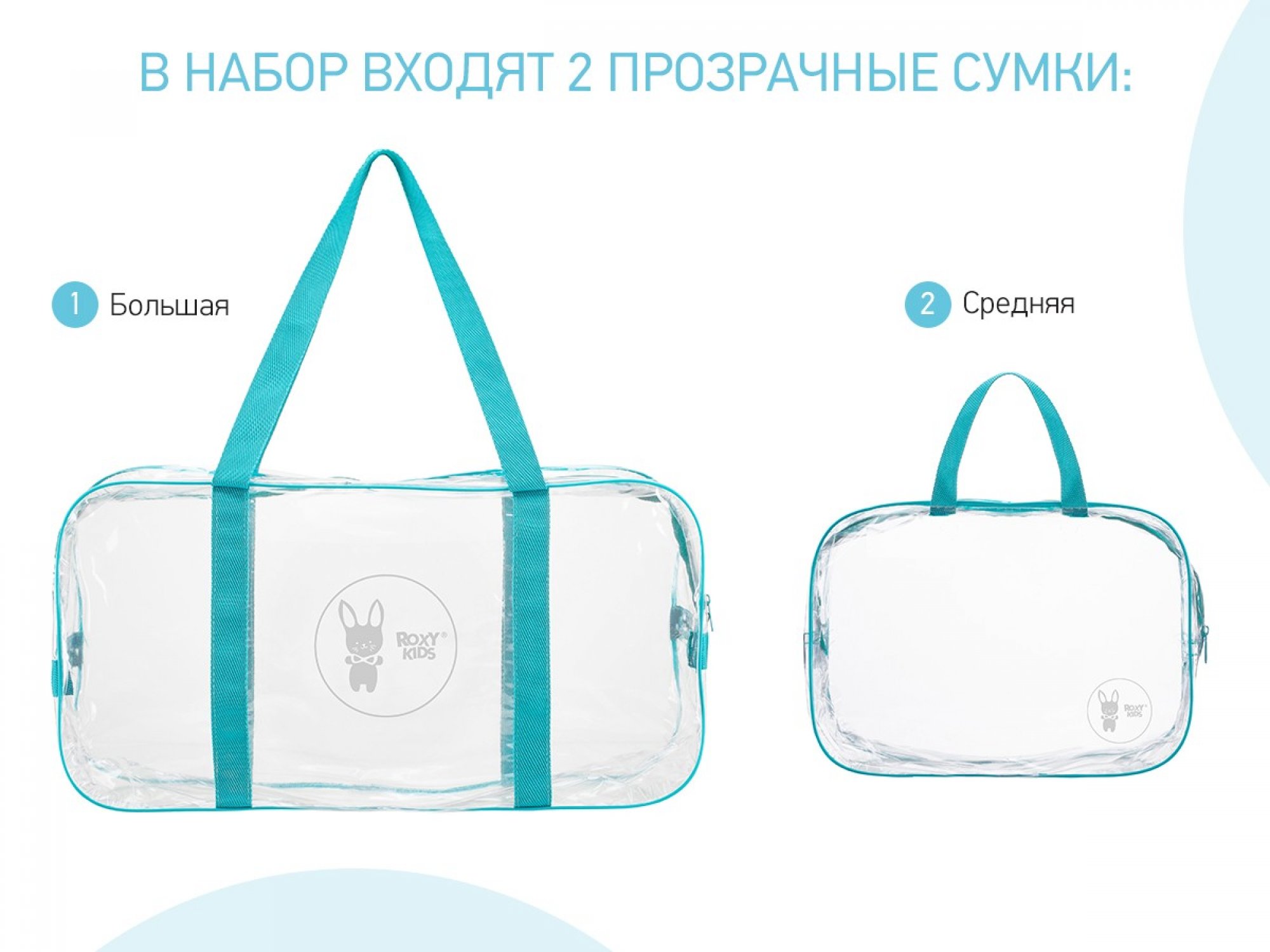 Прозрачная сумка в роддом ROXY-KIDS - нужный и полезный аксессуар, который поможет будущей маме подготовиться к встрече с малышом. Комплект из 2-х штук позволит вместить все необходимое: товары для мамы до и после родов, вещи для новорожденного, предметы гигиены, документы и медикаменты. Сумки сертифицированы в Eurofins и разрешены в родильных домах и лечебных учреждениях.