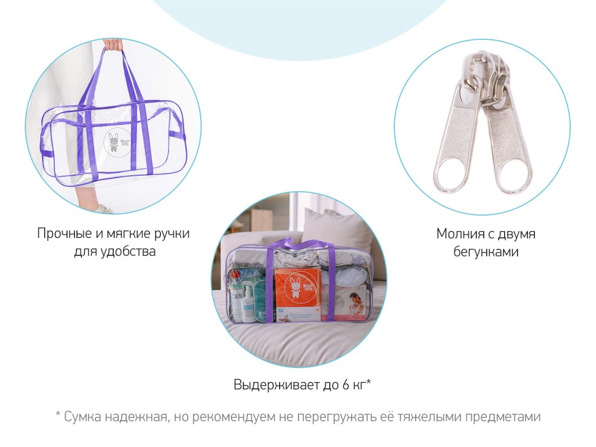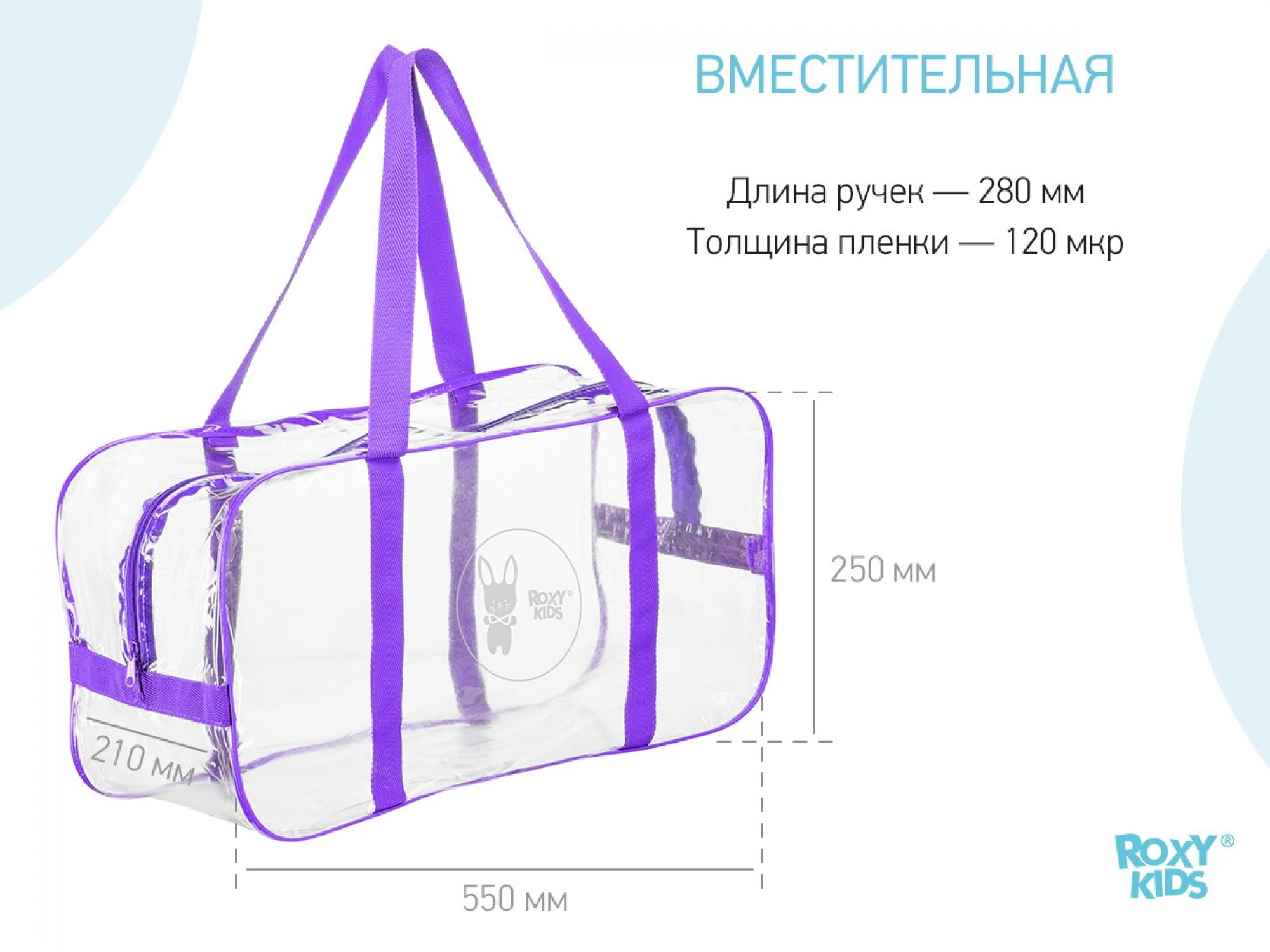 Прозрачная сумка в роддом ROXY-KIDS - нужный и полезный аксессуар, который поможет будущей маме подготовиться к встрече с малышом. Она позволит вместить все необходимое: товары для мамы до и после родов, вещи для новорожденного, предметы гигиены, документы и медикаменты. Изделие сертифицировано в Eurofins и разрешено в родильных домах и лечебных учреждениях. Максимальная нагрузка - 6 кг.