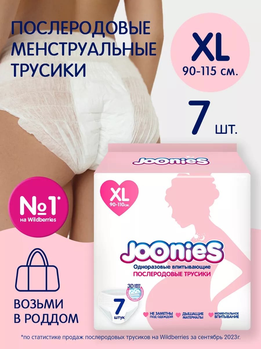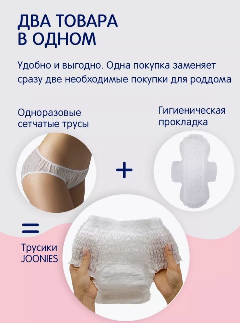 Трусики послеродовые JOONIES являются одноразовыми. Создают комфортное ношение и не сдавливают при носке. Тонкая текстура позволяет незаметно носить белье под одеждой.